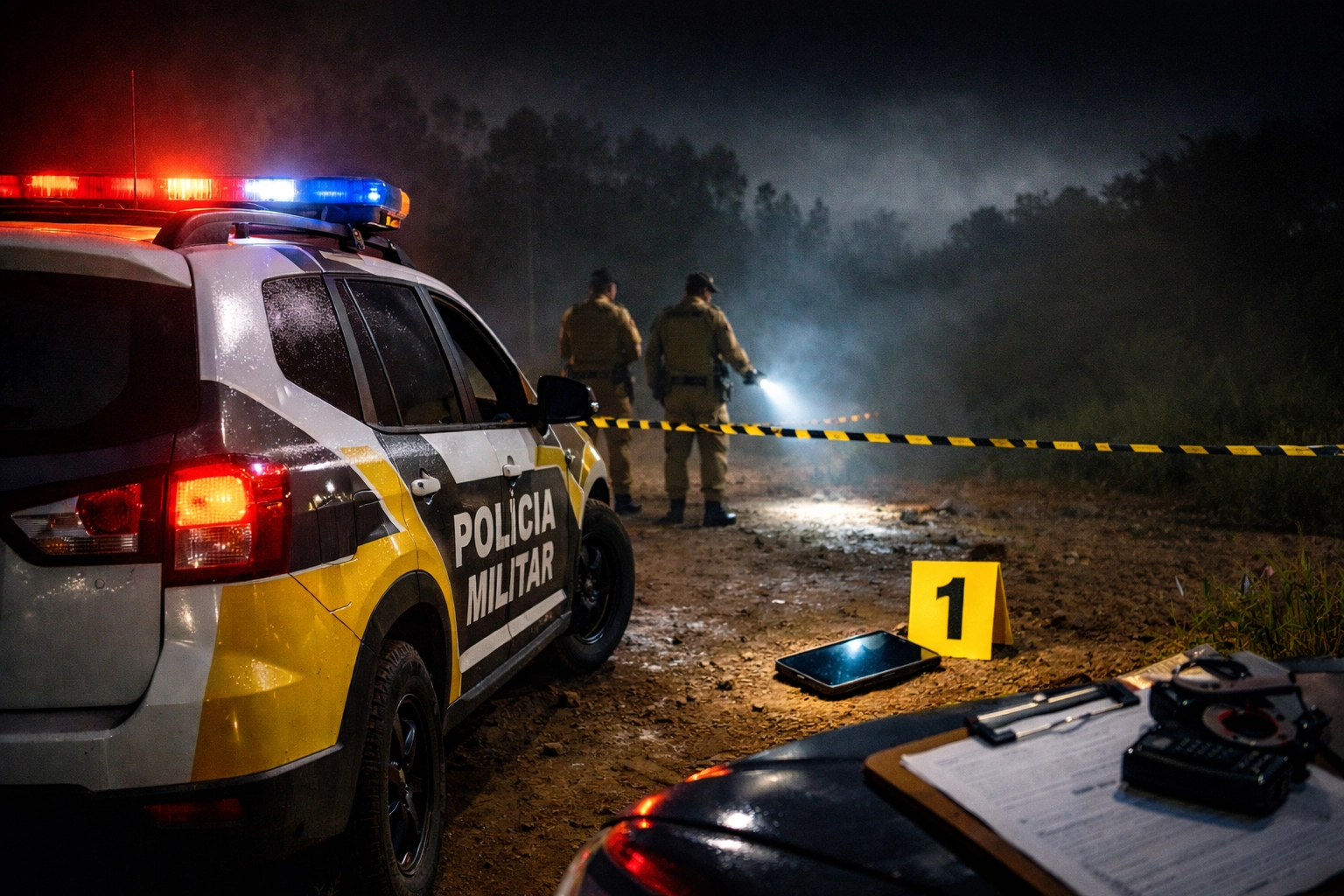 Os policiais realizaram diligências tanto no endereço da vítima quanto no local onde os fatos teriam ocorrido. No entanto, não foram encontrados estojos ou projéteis. Apenas o veículo da vítima foi localizado estacionado em frente à residência, além de um aparelho celular, que foi recolhido e encaminhado à Delegacia para preservação como possível meio de prova.