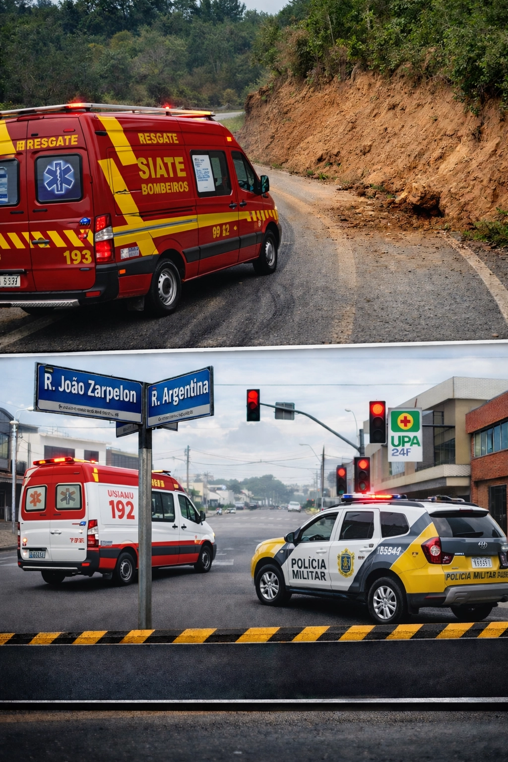 Já o terceiro acidente foi registrado às 19h45, no cruzamento das ruas João Zarpelon e Argentina. A colisão, do tipo abalroamento transversal, envolveu um automóvel Jeep Renegade e uma motocicleta Yamaha YBR 125 Factor, deixando vítimas.